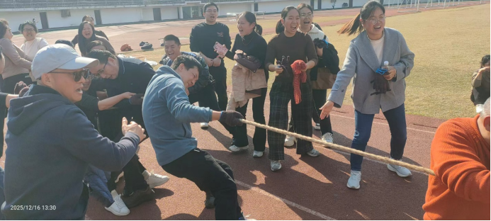 冬阳和煦,激情飞扬。2025年12月16日中午,南华大学公共卫生学院于红湘校区北校体育场举行全院教职工“凝心聚力·绳采飞扬”拔河比赛。本次比赛旨在丰富教职工业余文化生活,增强团队凝聚力和向心力,展现公共卫生学院教职工团结拼搏、积极向上的精神风貌。学院领导班子成员与全体教职工齐聚赛场,以力量与默契共绘集体风采。