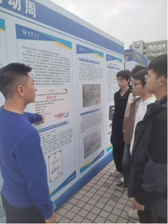 参观过程中,同学们认真聆听讲解,积极交流讨论。如梁同学在询问杨老师如何更好的度过大学四年以及是否也可以加入这些团队去实现自己的理想时杨老师也给出了自己的见解来帮助同学解决困惑。这些来自不同领域的创新成果不仅拓展了学生的专业视野,更激发了他们的创新思维。