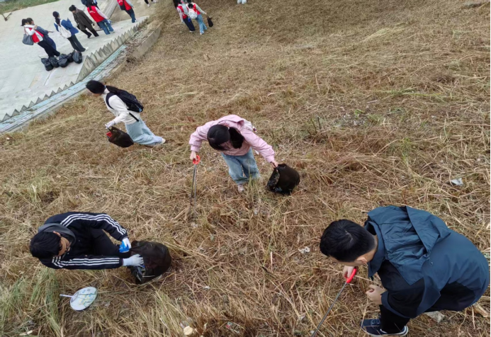 学生党员们沿河岸徒步,观察生态现状,随后,投身环保实践,清理河道堤坝周边垃圾。只见学生党员手持清洁工具,不一会儿就使河道沿岸焕然一新。这一幕不不仅仅是改善了河岸环境,更是展现了我院学生党员守护湘江母亲河的决心与担当。