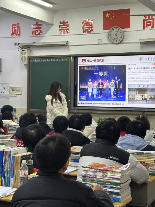 宣讲前,团队进行了为期一周的精心筹备。在学院资助专干蒋剑红老师的指导下,成员们系统学习资助政策,并结合高三学生实际需求,反复打磨内容,开展多次试讲。团队还准备了详实的PPT、宣传手册与问卷,并融入南华学子受助成才的真实案例,以身边故事增强感染力。从联系母校到设计互动,每一步都周密安排,力求把政策讲清、将关怀送达,为学弟学妹注入安心与动力。