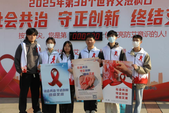 “按下指尖,您是第xxx位点亮防艾意识的人!”背景板前的电子计数器不断跳动,志愿者们邀请市民参与“防艾打卡”,不少旅客驻足与红丝带主题展板合影留念。“我们想让更多人知道,防艾不是‘遥远的事’,而是每个人的健康责任。”聆艾社团成员小李说,作为预防医学专业的学生,能通过实践传递防艾知识,他深感责任与意义并重。
