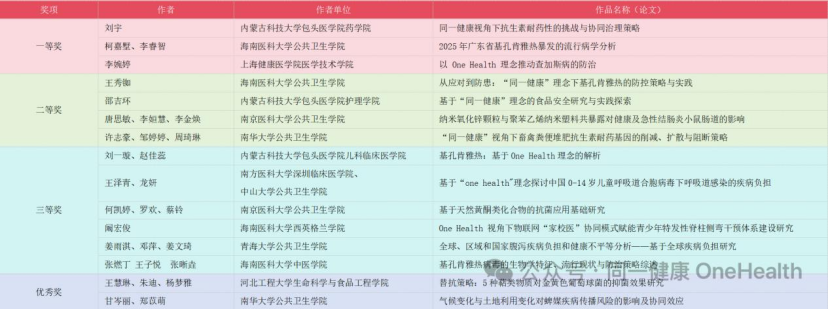 2025年11月3日是第十个“国际同一健康日”(One Health Day)。“同一健康”是多个健康相关学科和机构,在地区、国家和全球范围内,共同推动人类、动物与环境整体健康水平提升的一种协作模式。为进一步推广同一健康理念,海南医科大学One Health研究中心,联合中山大学公共卫生学院One Health研究中心、温州医科大学同一健康研究院、内蒙古科技大学包头医学院研究生院等举办了第四届“同一健康进校园之One Health Day作品征集活动”。