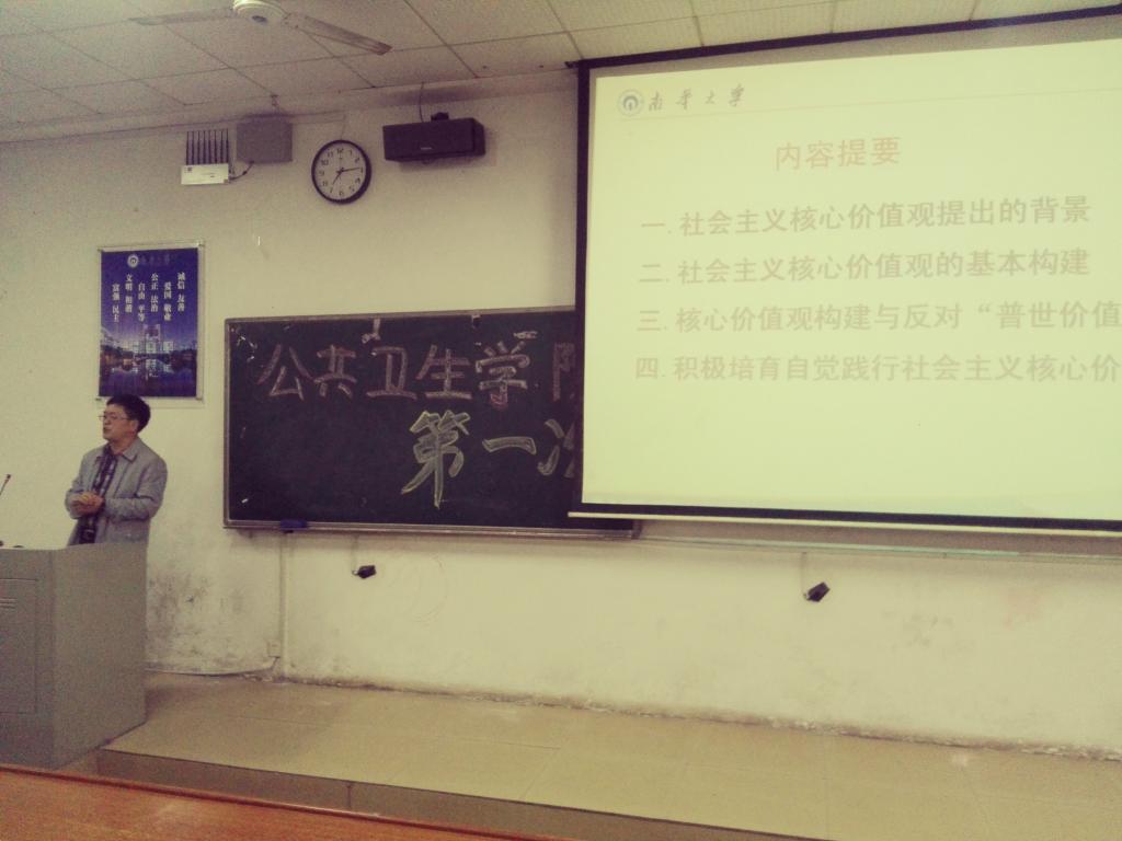 本次团课辅导的主讲人是党委副书记田生军,团课的重点是讲解培育和践行社会主义价值观。首先,田书记向我们介绍了社会主义核心价值提出的背景,他从当代中国社会发展的特殊境遇与文化的大发展大繁荣两个方面出发,向我们解说了全球化信息化等对社会主义核心价值观的影响。接着,他又结合新播热剧《人民的名义》中达康书记的公正无私来反讽当今某些社会“精英”的失范。然后,田书记又简单讲述了“三纲五常”等几种经典的核心价值观。最后,田书记又向我们提了几个关于社会主义核心价值观的问题。至此,本次团课辅导就圆满结束了。