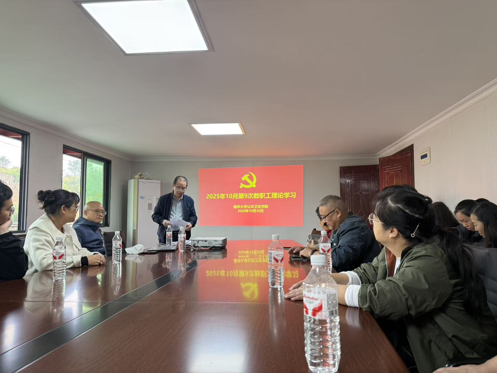 10月29日上午,公共卫生学院党委在湖南省水法制教育宣传基地会议室组织召开2025年10月第9次教职工理论学习会。本次会议由学院党委书记龙鼎新主持,学院全体党员教师及部分群众代表教职工参加了学习。